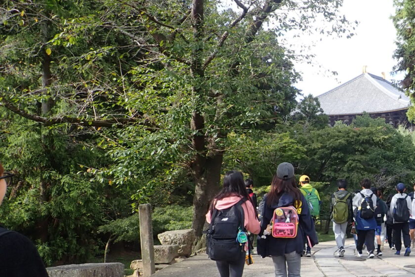 その後、東大寺に徒歩で移動。歩きながら、沢山の鹿や修学旅行生、外国からの観光旅行客の方に会いました。