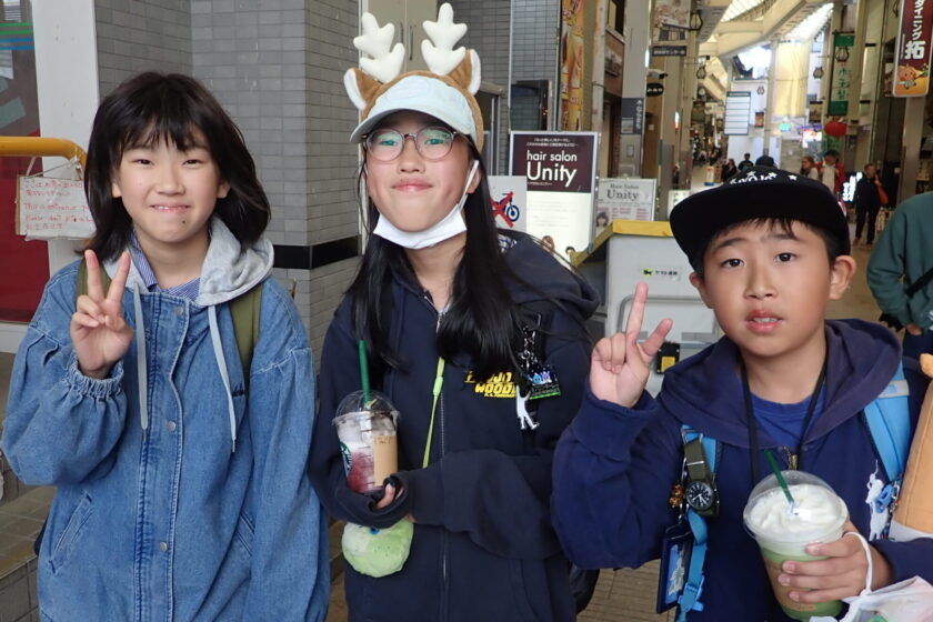 小グループで、キーホルダーや鹿のカチューシャ、お面、お菓子や大仏プリンなど、お目当てのお土産を見つけては、嬉しそうに買っていました。
