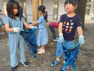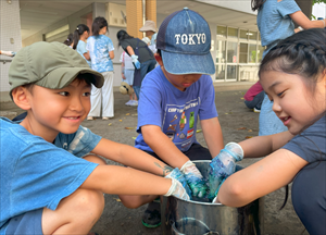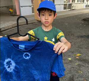 これでひと安心です。今度は青く染まりそうだとわかったので、染めること自体が楽しくなってきて、2度目にTシャツをつけるときにはもう「くさい」という子はいませんでした。