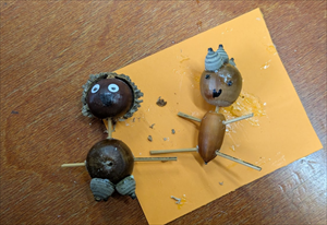 3年生は、総合の時間にドングリを使った工作をしました。