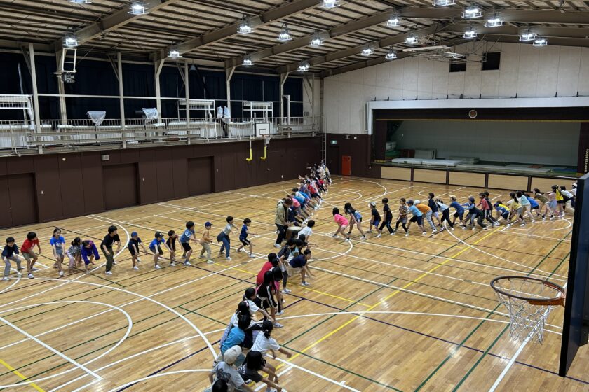 運動会が延期となり、今日は運動会に向けて、最後の練習を体育館で行いました。