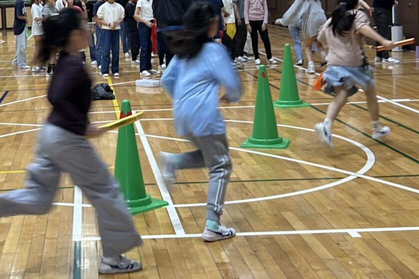 3時間目は、5,6年の1組が創作表現とお楽しみリレー。