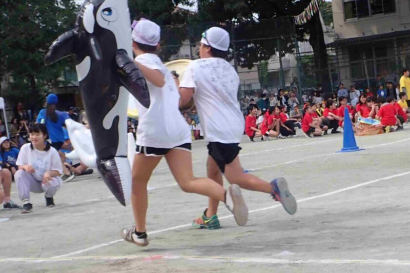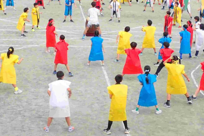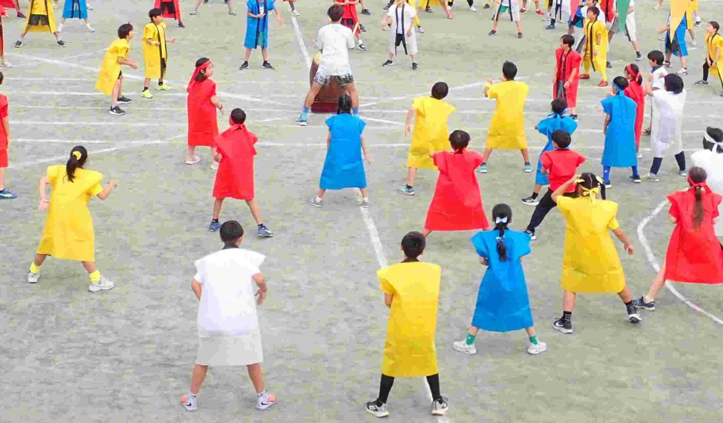 このテーマで、6年生の実行委員長はじめ実行委員の子ども達が、みんなが楽しめる運動会を考えました。特に、全校種目の「コロコロ4色」は、毎日、実行委員の子ども達が話し合って、競技内容を決めました。