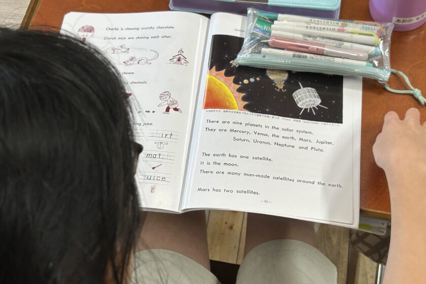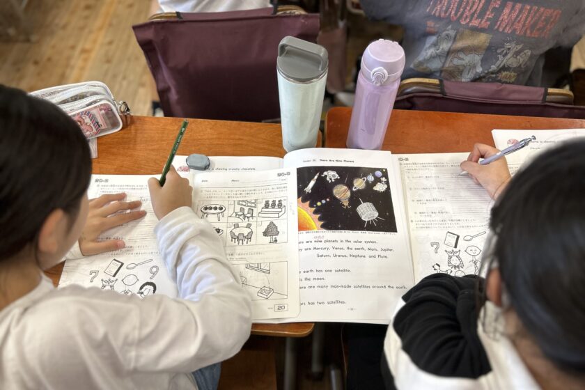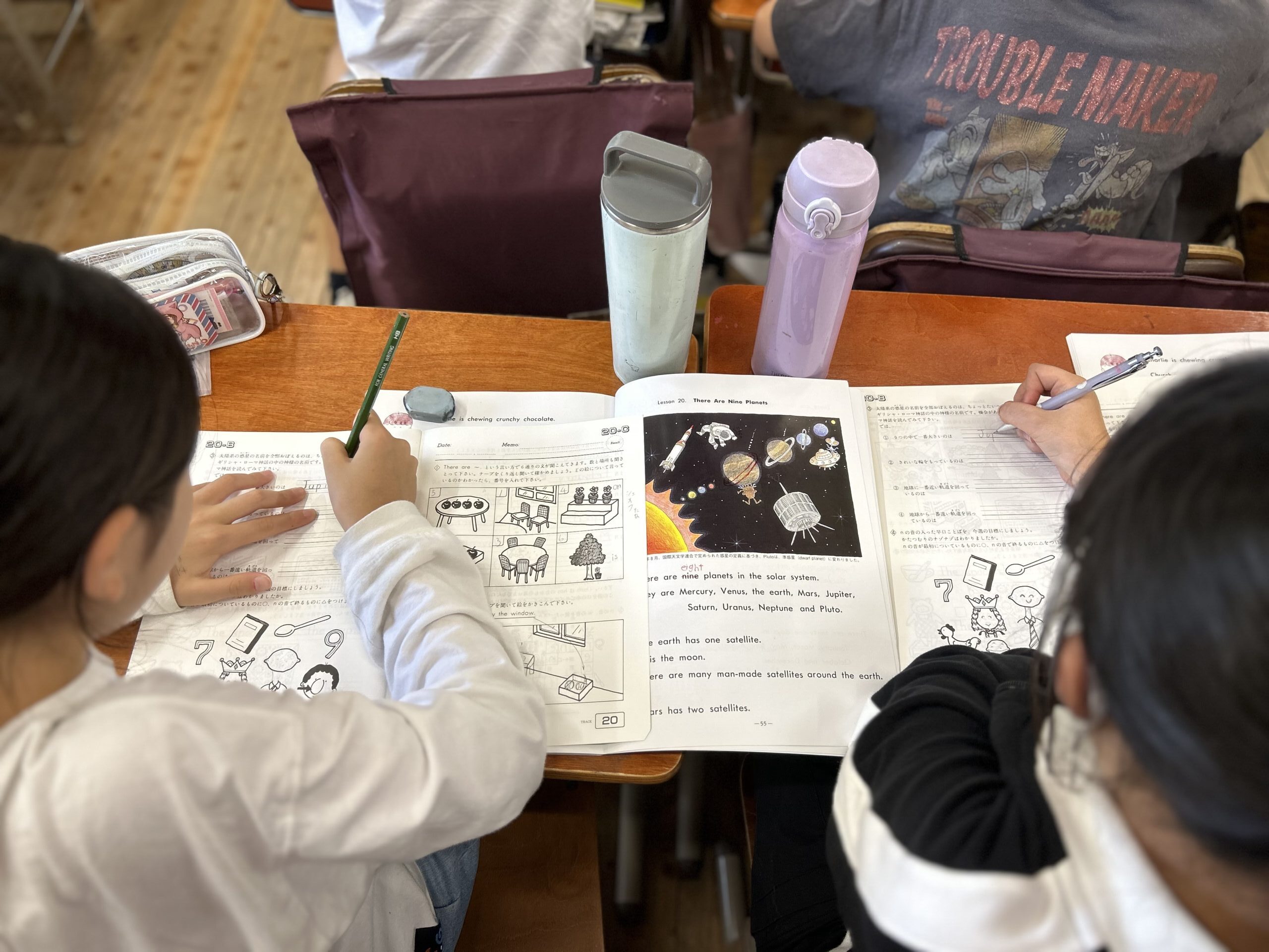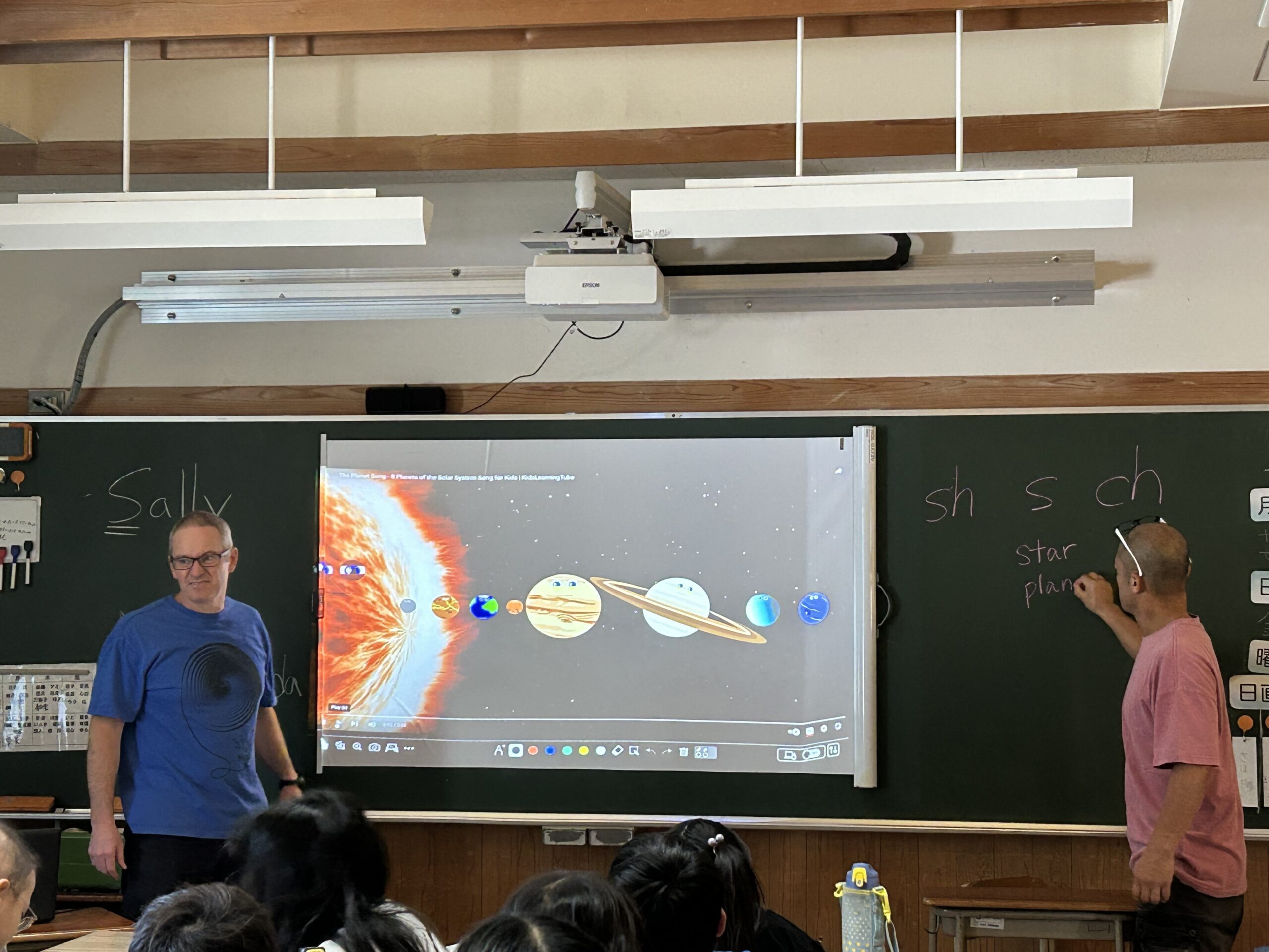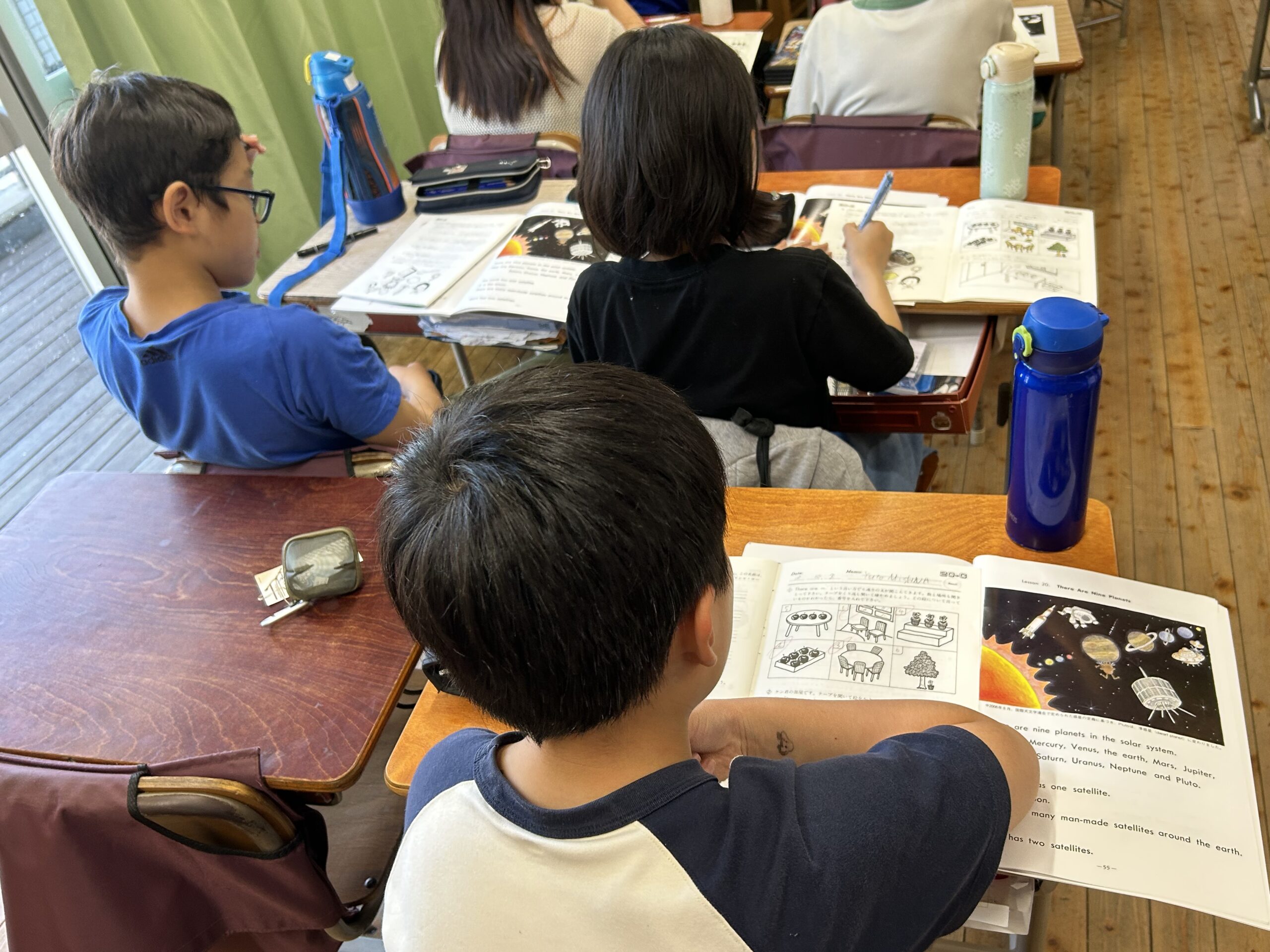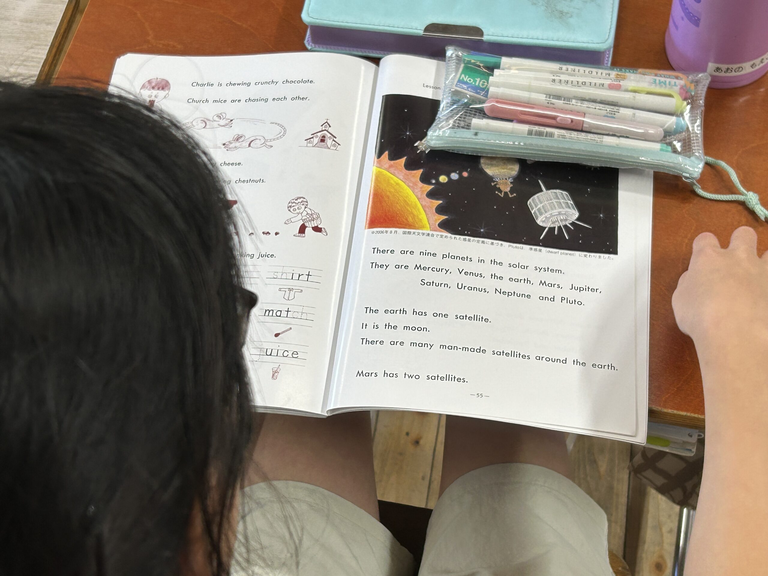 「そうそう、最近、Pluto(冥王星)は惑星から外されたんだって」とか「小さかったらしいよ」など、色々な意見が出て、英語だけではない、子どもたちのもっている知識にびっくりしました。