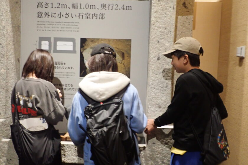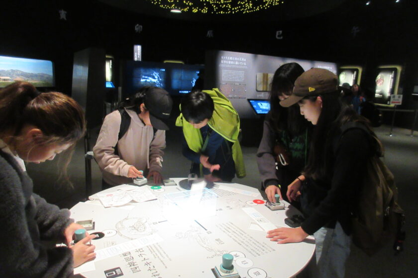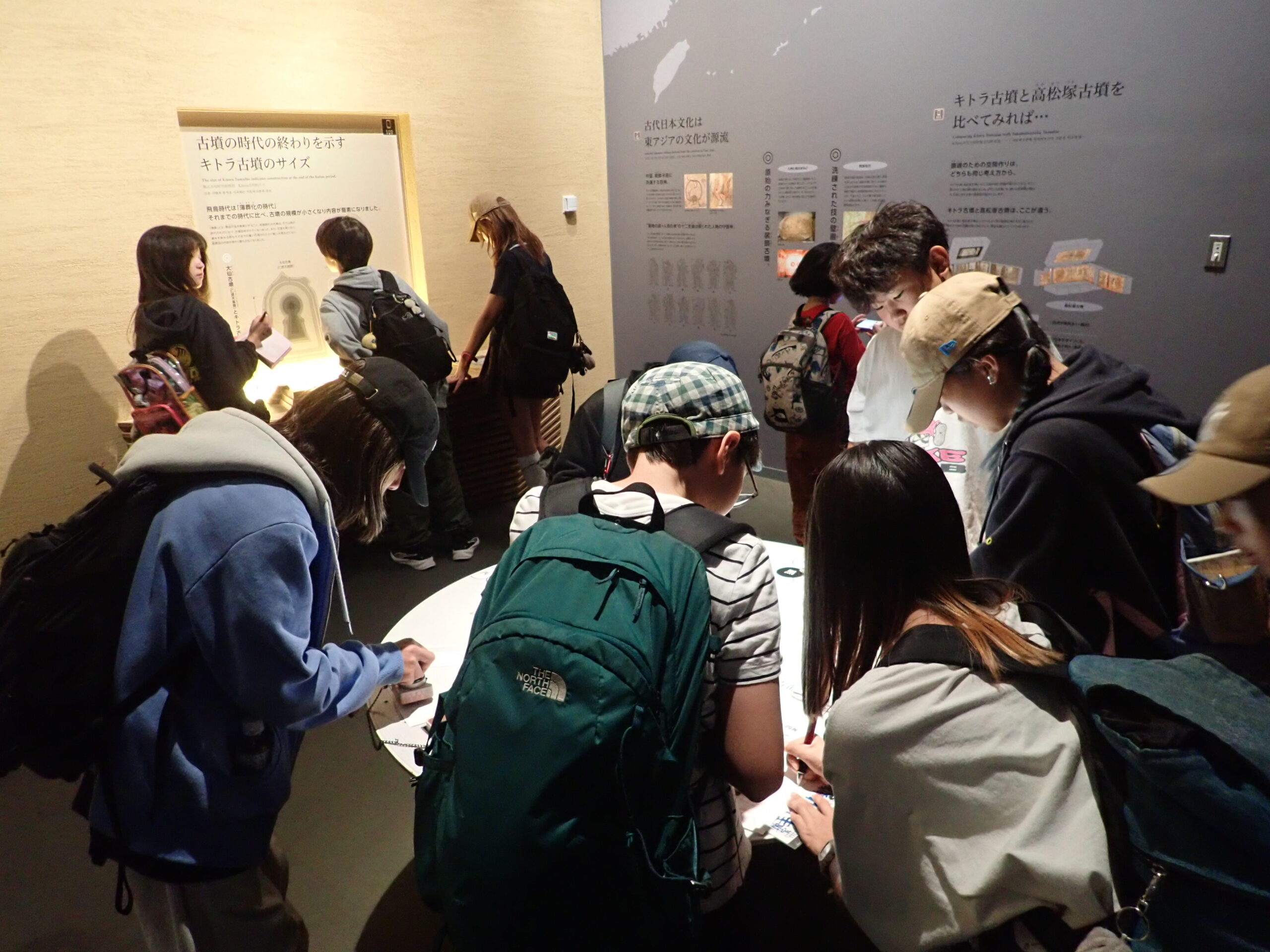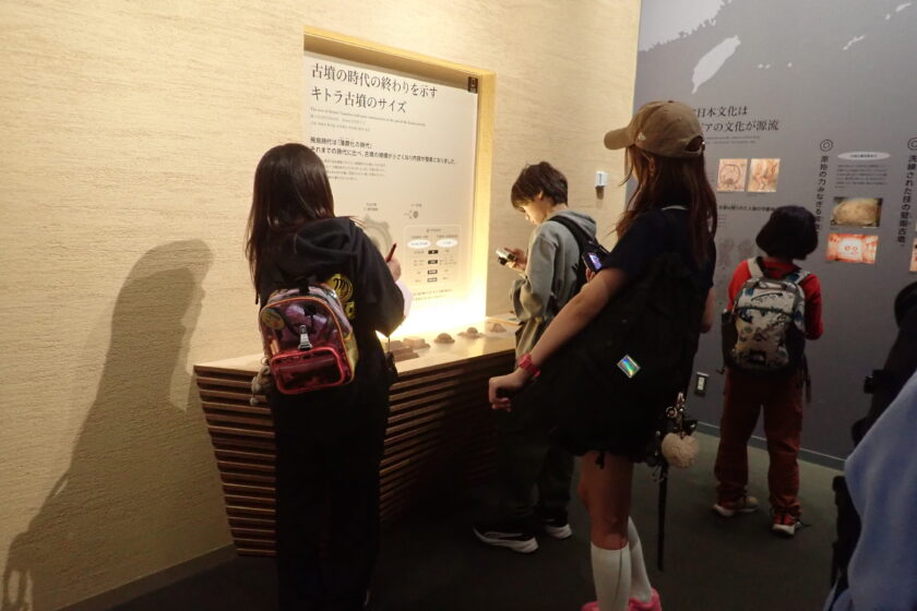 その後、キトラ古墳の外観を見て、芝生でお弁当を食べ、四神の館で、さらに学びを深めました。体験的なコーナーが多く、楽しみながら調べる子どもたちの様子が見られました。