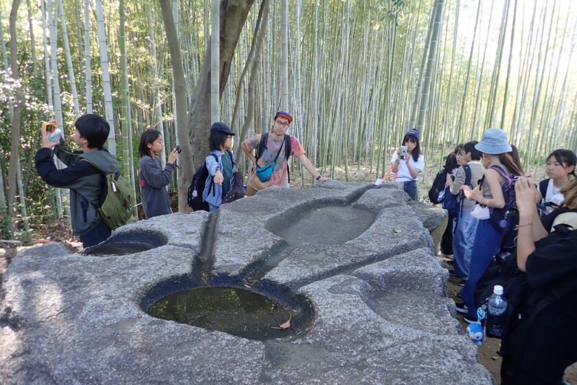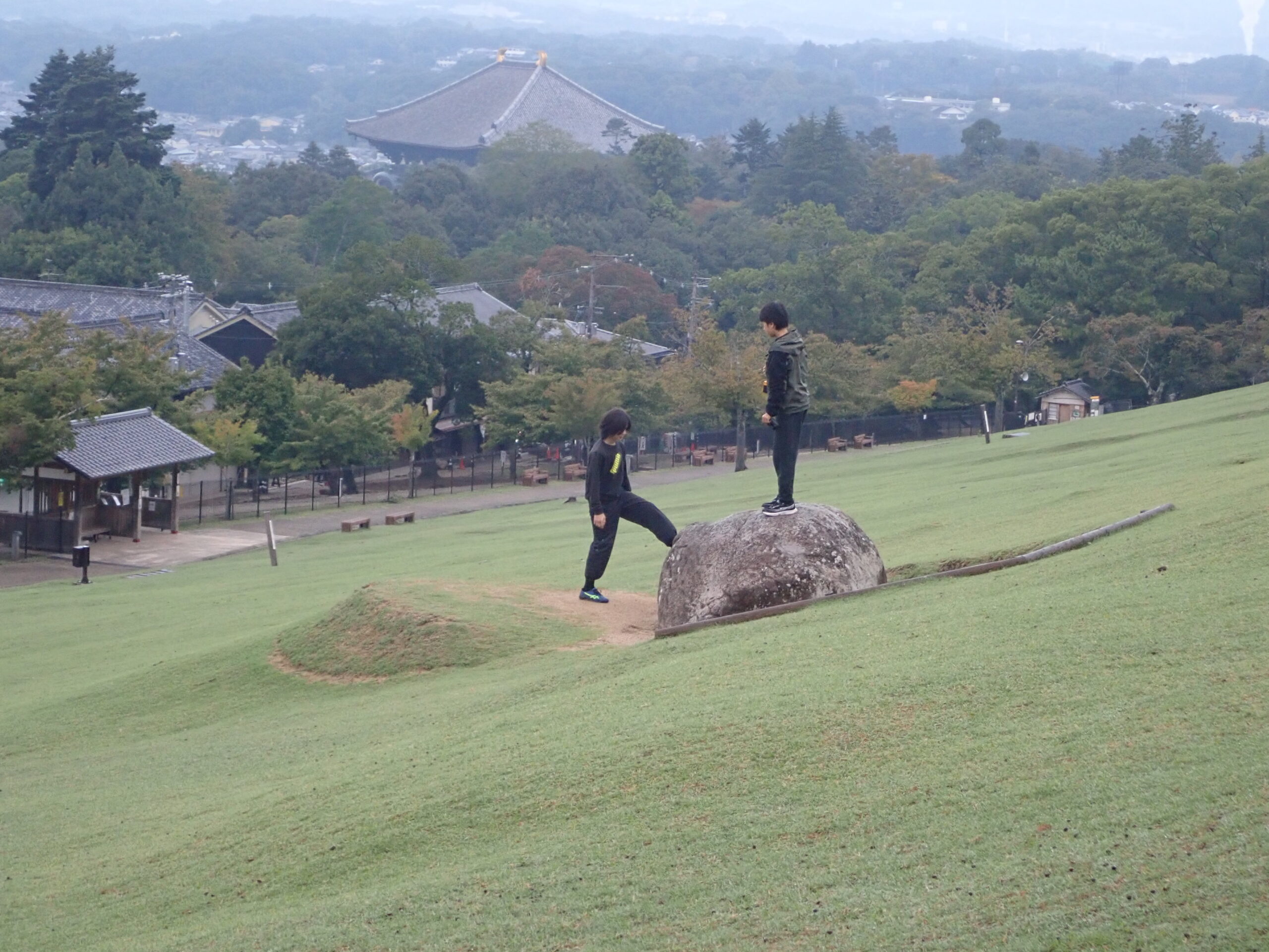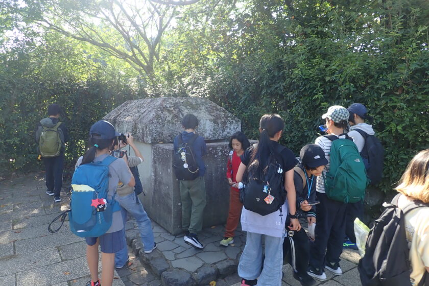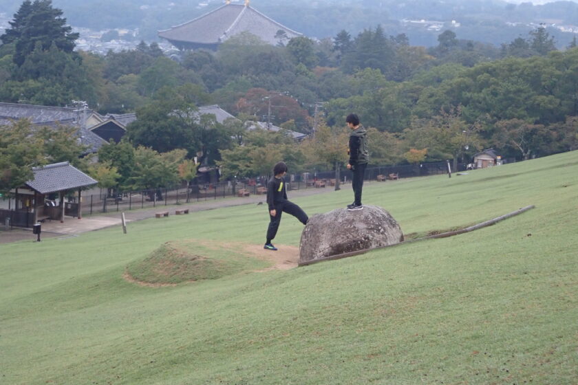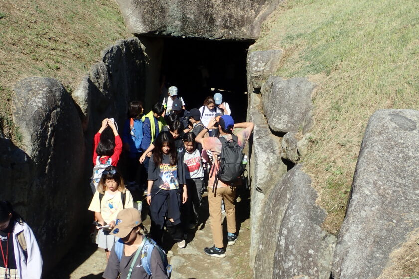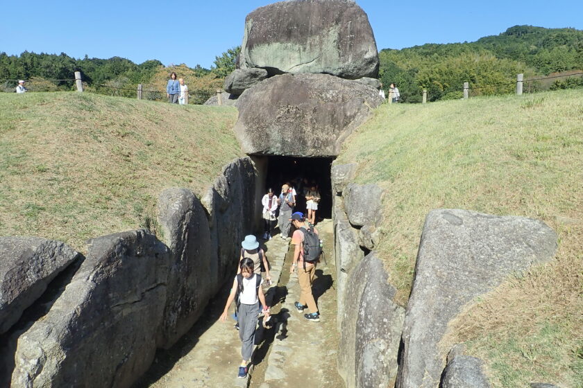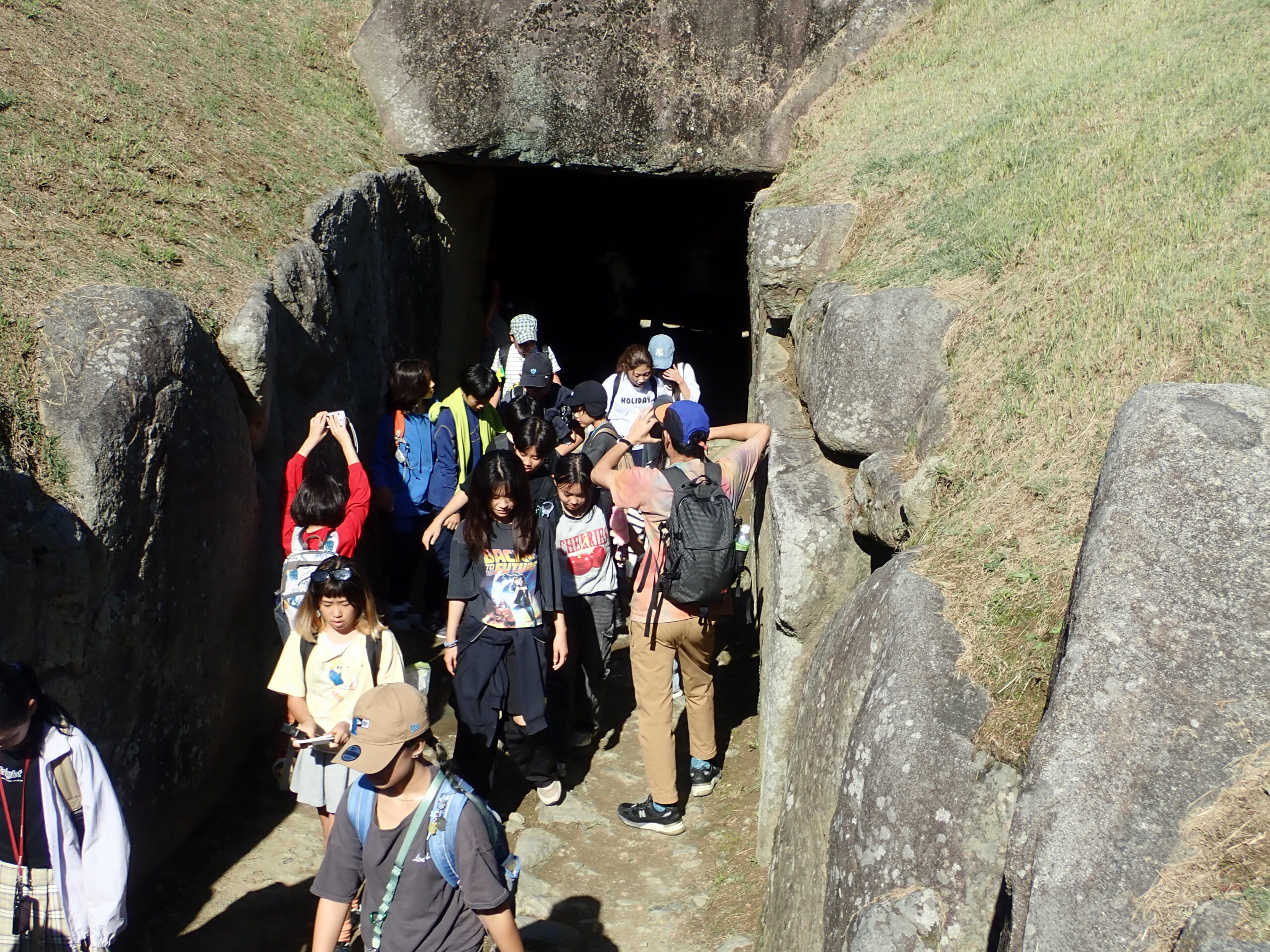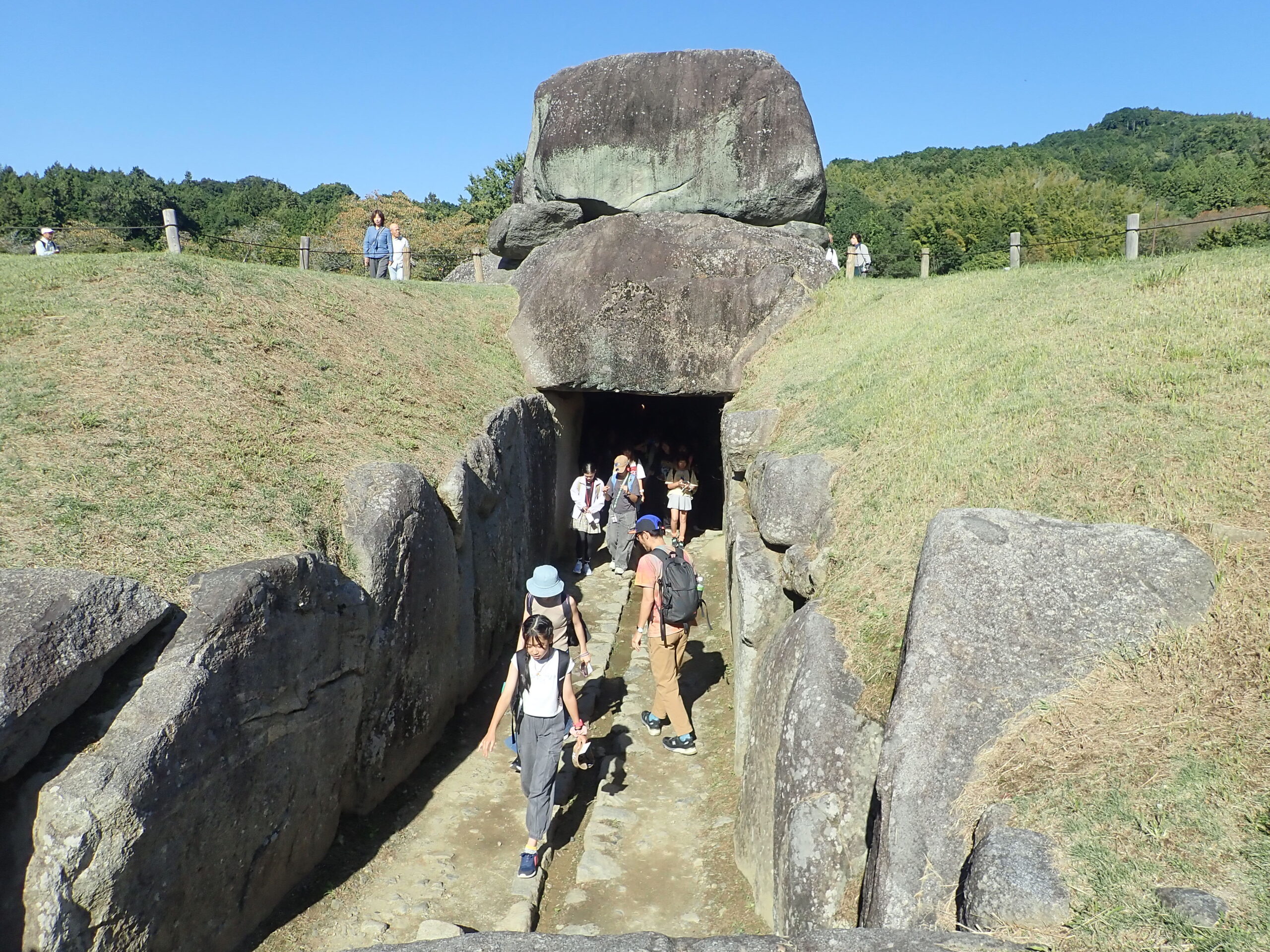 石舞台古墳の大きな石に、「お~!」と大歓声!