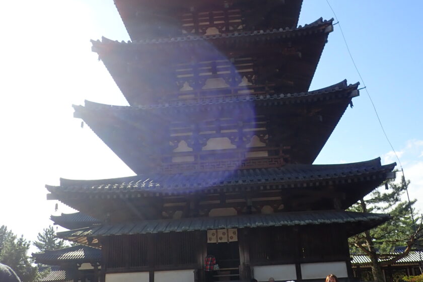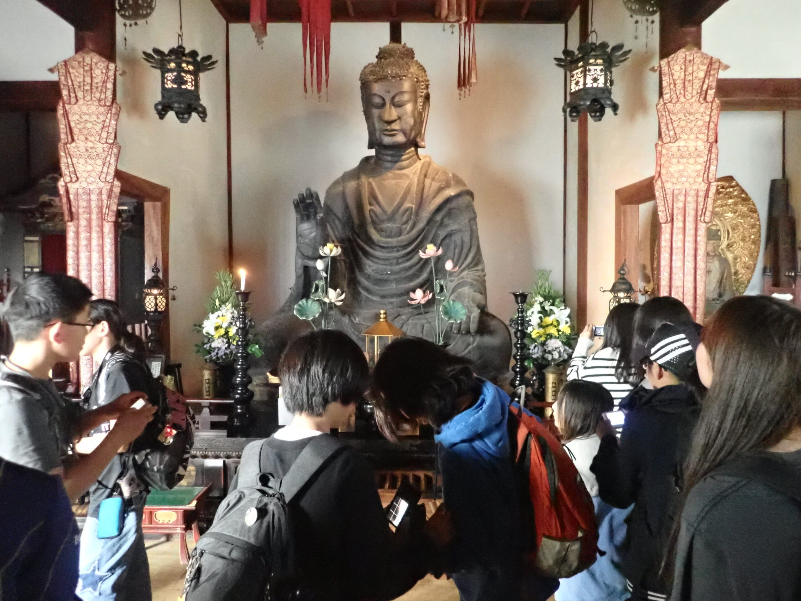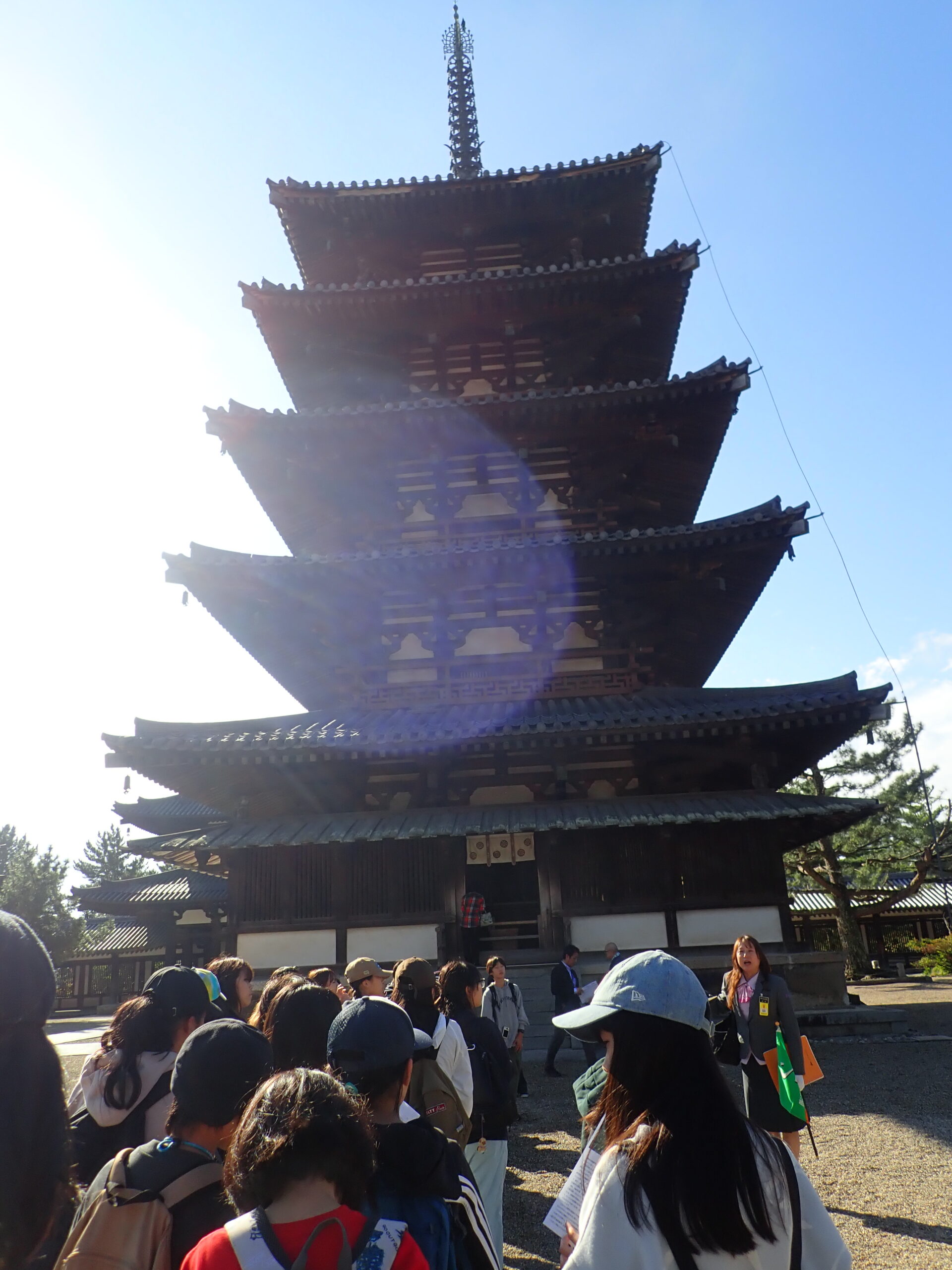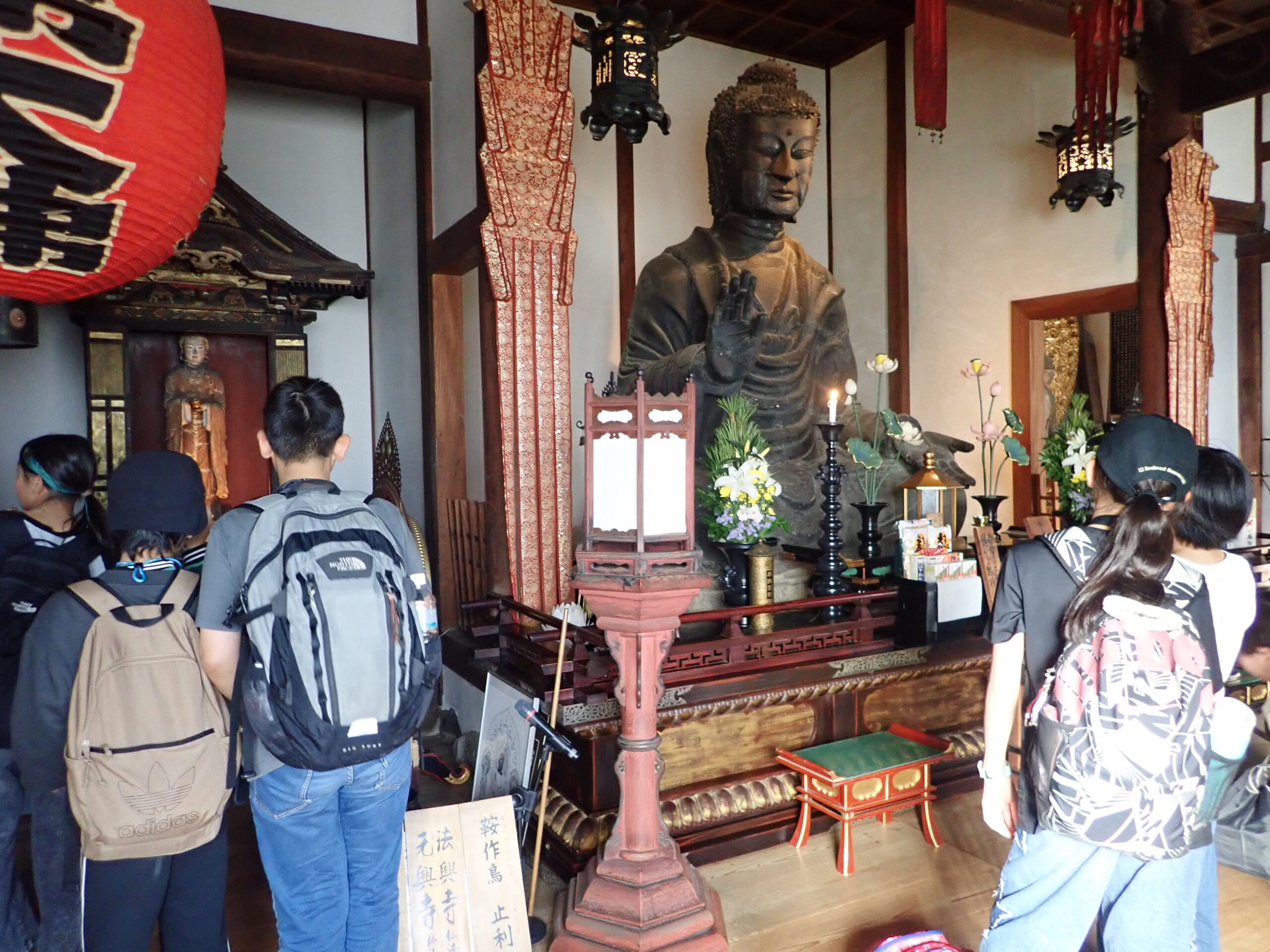 金堂で阿弥陀如来坐像や薬師如来坐像などを見て、大宝蔵院で百済観音や玉虫厨子など、たくさんの国宝を見て、大興奮!