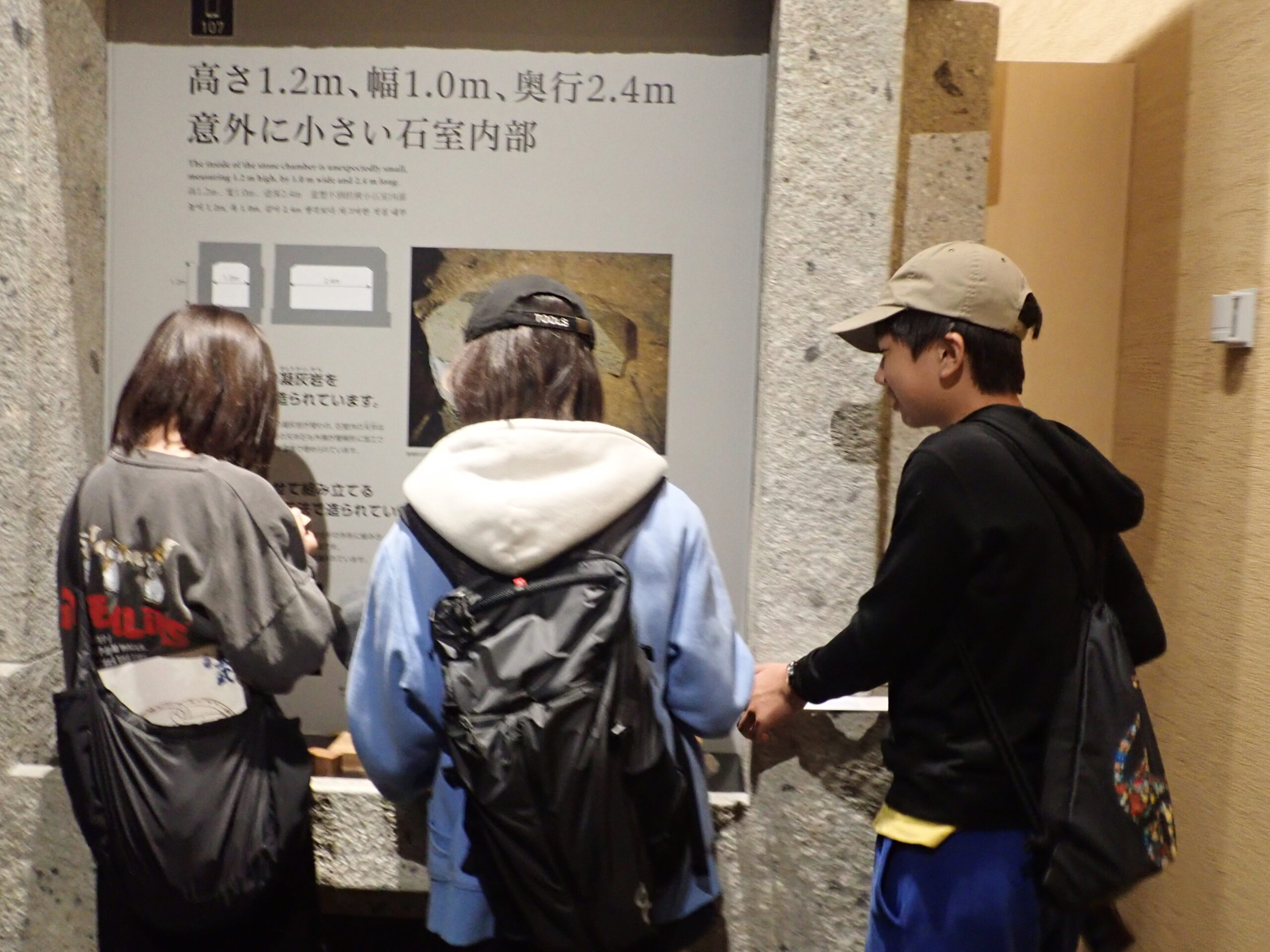 キトラ古墳壁画保存管理施設では、15,6人1グループで見学し、目の前に「玄武」の実物を見ながら、文化庁の方に質問することができました。