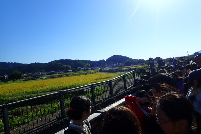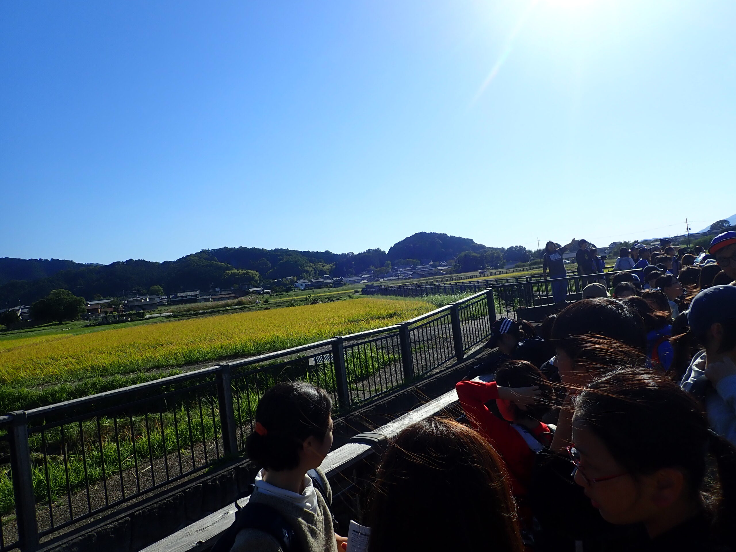 酒船石から亀形石造物、蘇我入鹿の首塚、飛鳥寺と甘樫丘まで、約2時間ほど、稲の穂が実った秋の田や稲刈りの終わった田を眺めながら歩き、飛鳥時代に思いを馳せました。