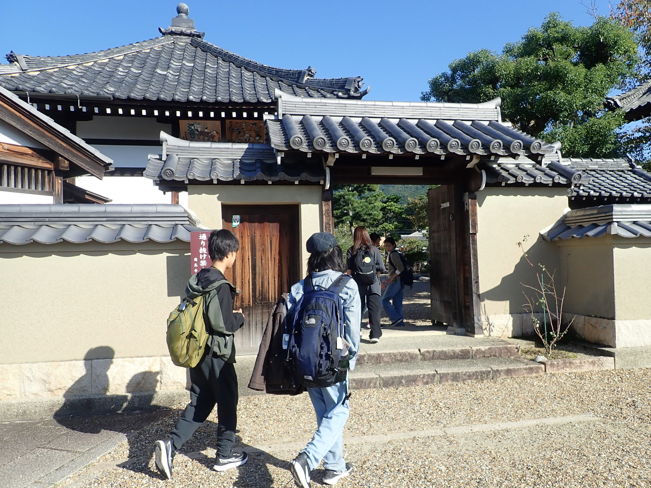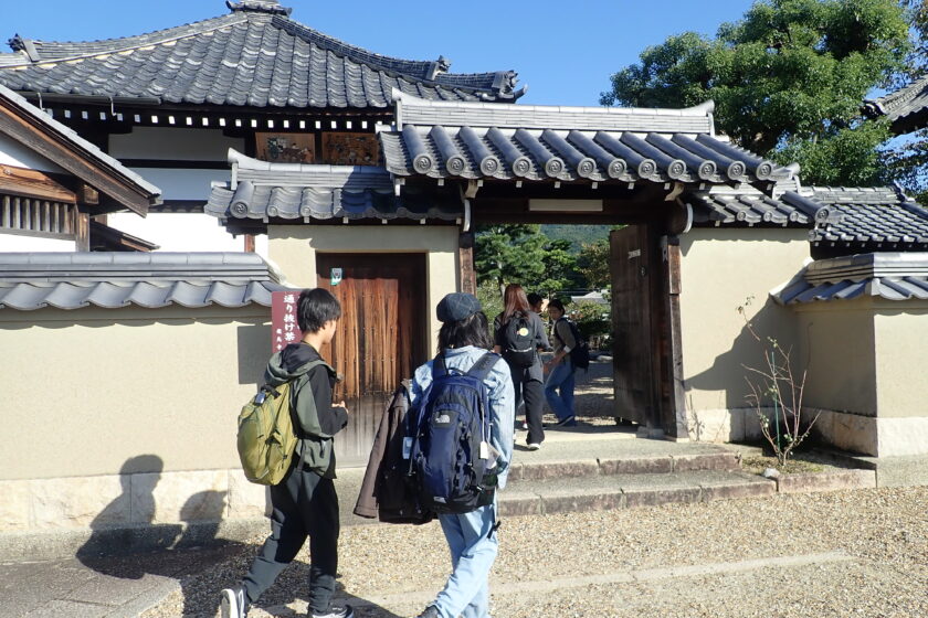 法隆寺の玄関・南大門をバックに集合写真をパチリ!