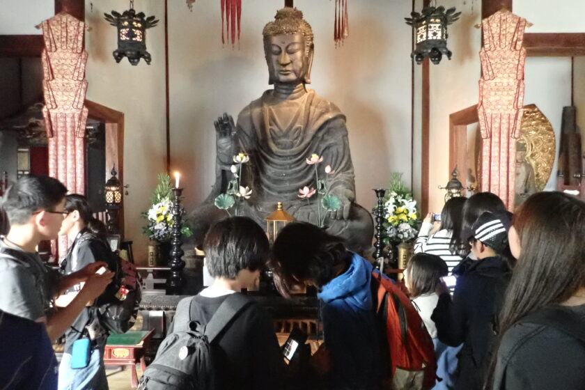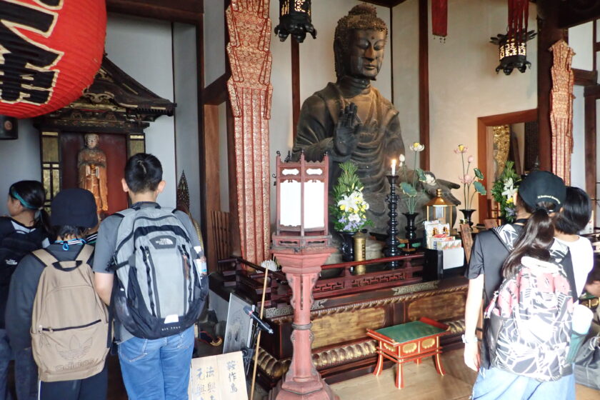 観音像を見て「副耳さんが多いね!」とか「樟でこんなに細かく掘るなんてすごい!」など、5,6年生の工作で木工作品を制作しているだけあり、子どもたちの鑑賞する視点が豊かです。