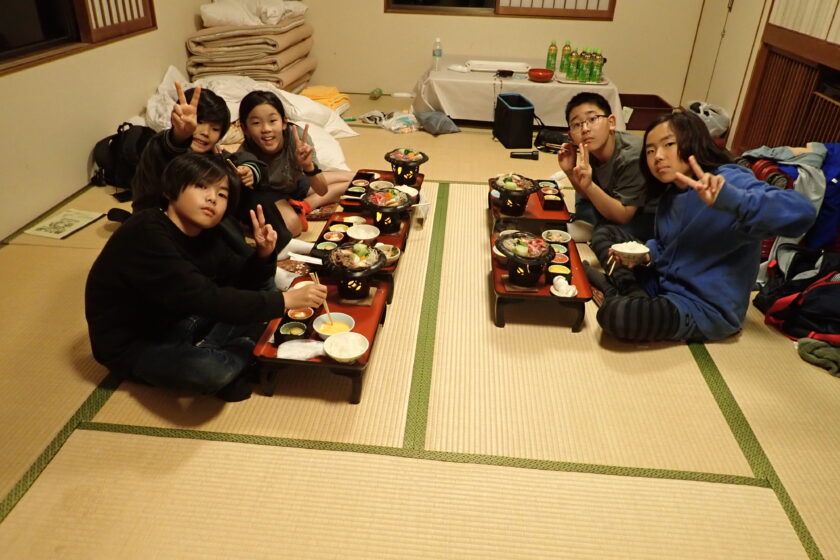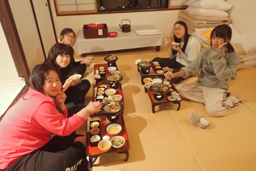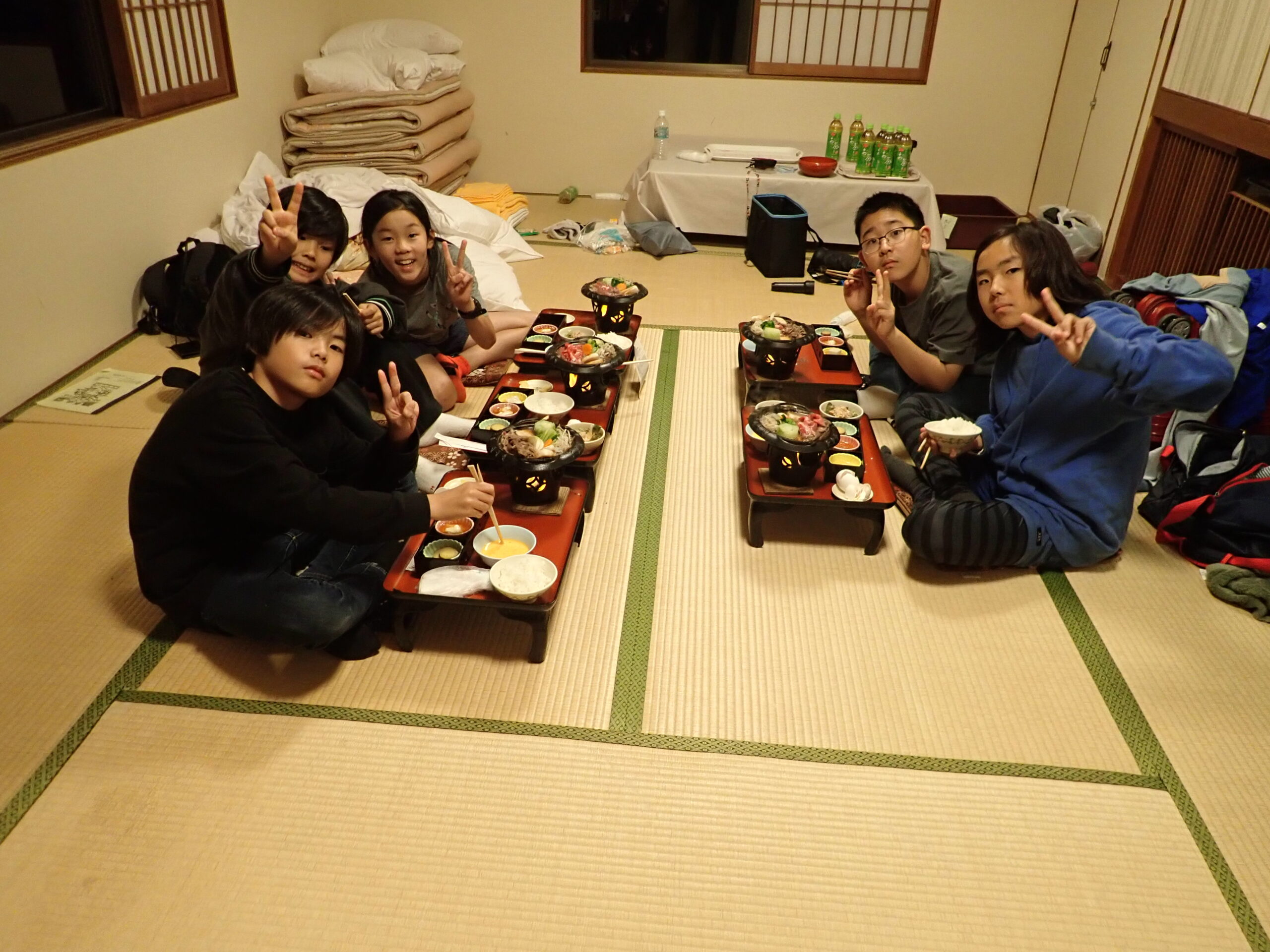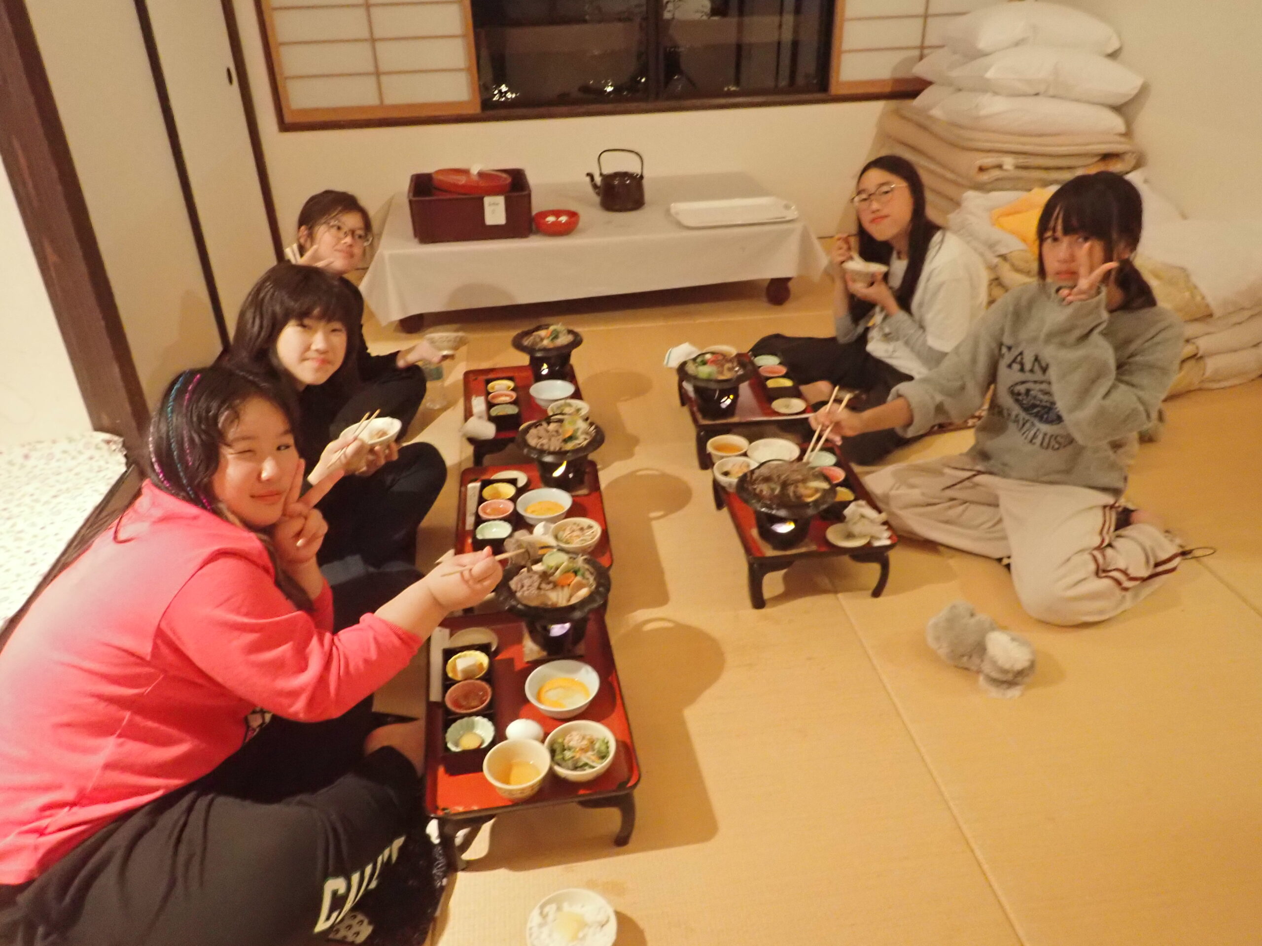 バスのガイドさんとお別れし、お宿「むさし野」に戻り、美味しいすき焼きをいただきました。