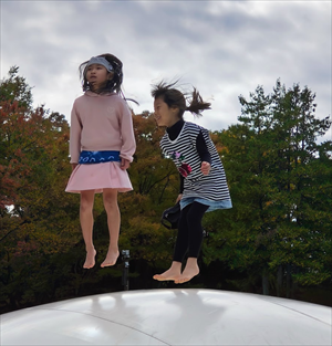 トランポリンのように高く飛び跳ねることができます。飛んだり転がったり夢中になって汗だくになるまでいっぱい遊びました。