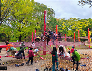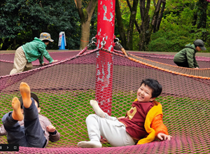 「虹のハンモック」も大人気。今日は遠足に来ていた学校が少なく、ほぼ貸し切り状態でした。遊具につくやいなや、みんな一斉に「わーい」と走り出していきました。