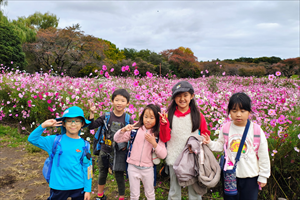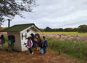 明け方からポツリポツリとわずかに雨も降っていて、遠足は中止かなと少し心配しましたが、学校を出発するころには雨もやみ、2年生の子どもたちが元気よく昭和記念公園へ出かけました。