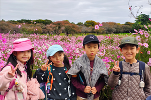 コスモスが見頃でした。色とりどりのコスモスがみんなを迎えてくれました。とてもきれいでしたね。