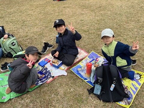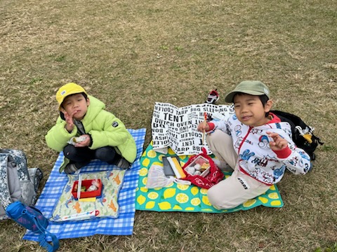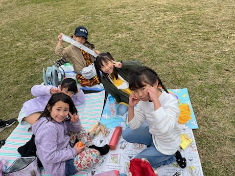 外で食べるごはんはおいしいですね。友達とおしゃべりしたり、おかしを見せ合ったりしながら、のんびり過ごしました。