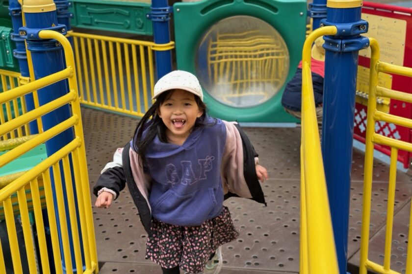 学校を出発して約2時間。歩いて、電車を乗り継いで、腹ペコの状態で着きました、子ども達のワンダーランド!広くて、たくさんの遊具があって、いくら時間があっても足りません。さっそく遊びたいところですが、まずは広い広い芝生でお弁当とおやつタイム。