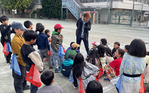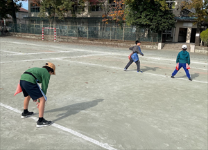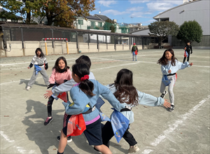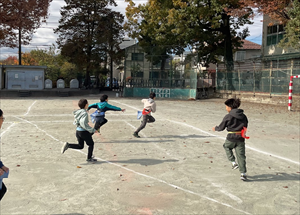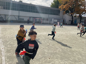 4年生の子どもたちがフラッグフットボールの学習をしています。