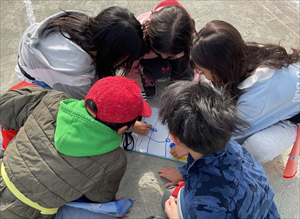 など、ペンと頭を使って作戦を立てます。とても頭を使うスポーツです。子ども達はチームの仲間と対話しながら作戦を立て、どうしたら得点できるか、相手の攻撃を防げるか、様々考えながら取り組んでいました。