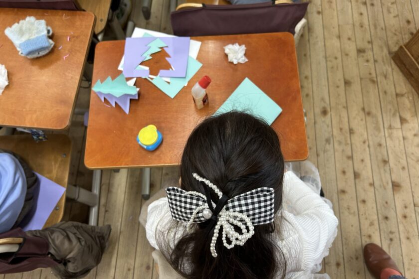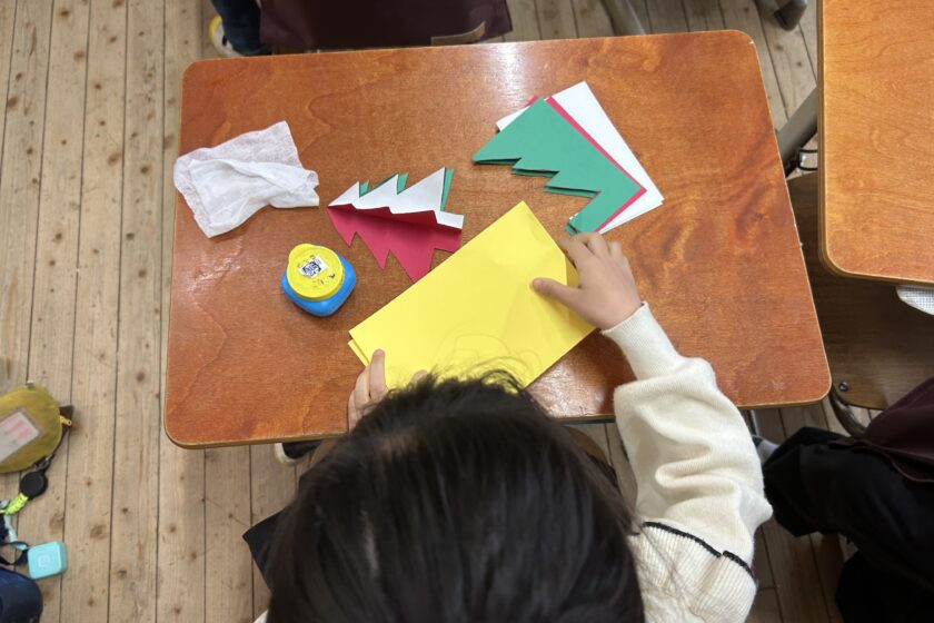 本日の1年生の美術は、年末年始・クリスマスシーズンにぴったりの「カードづくり」でした。