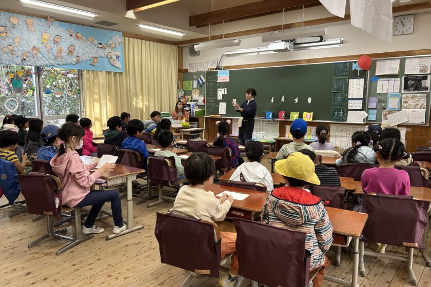 最初に、どんなカードを作るのか、子どもたちにイメージをもってもらえるように、カードを紹介しました。