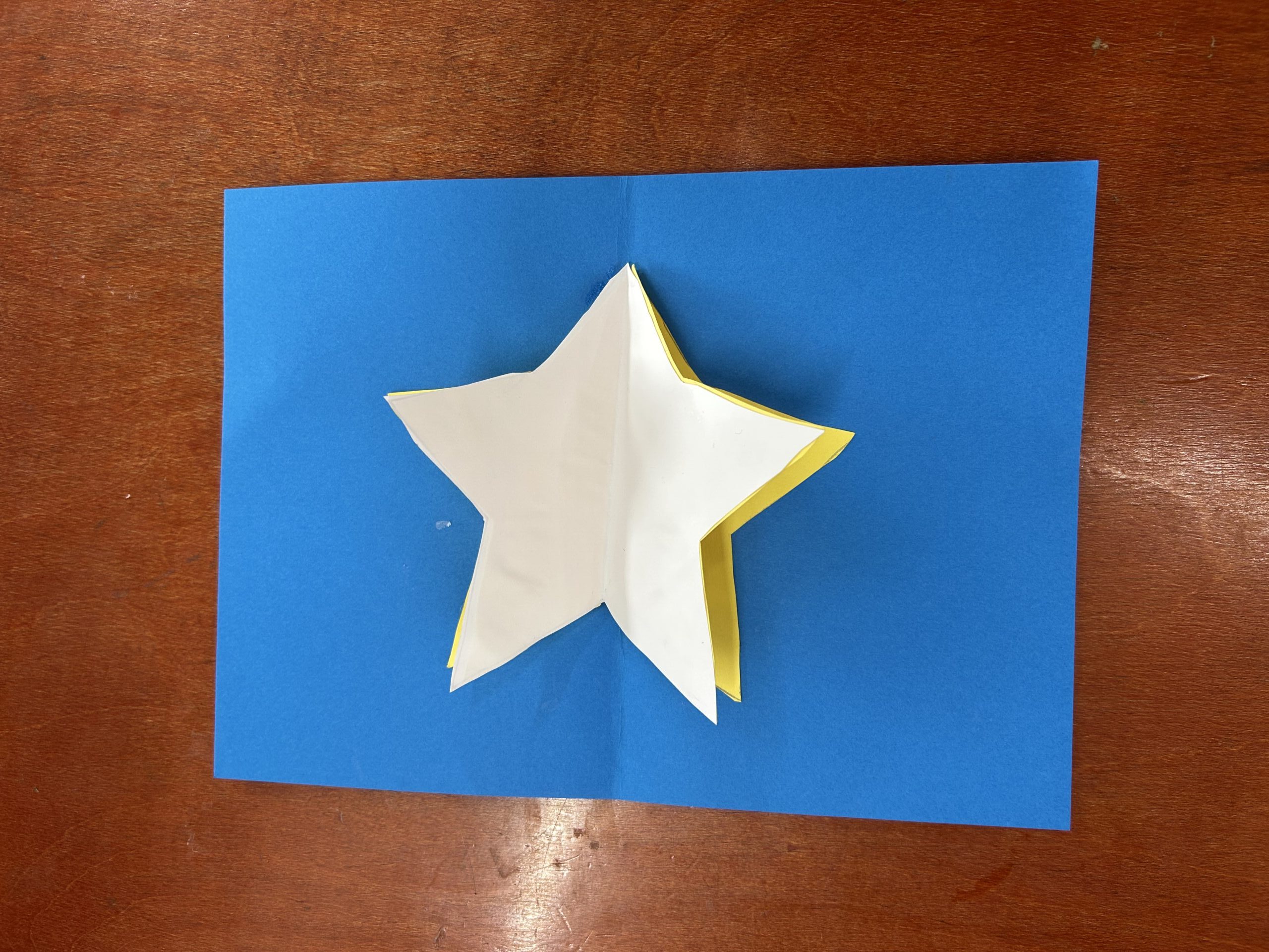 1枚型紙を作って、選んだ2枚の色紙に形を写して、型紙を作ったように、紙を二つに折って切ります。