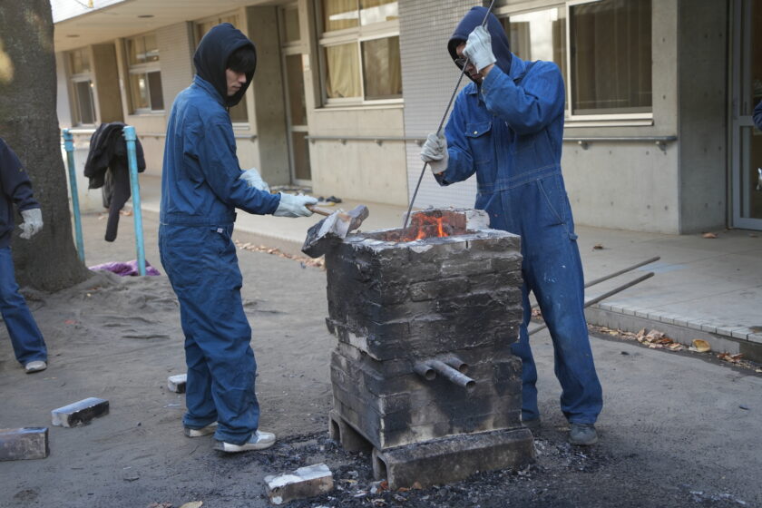 本校では、代々たたら製鉄の製法で鉄づくりをしています。