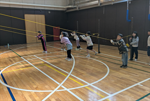 今日の1年生と3年生の体育の授業は体育館周回コースのサーキット運動を楽しみました。