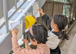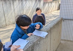 3年生の子どもたちが方位磁石を使って校内探検をしました。
