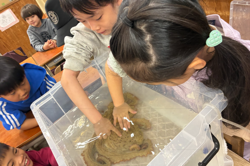 実際のタコを見て、触れてこどもたちはたくさんの発見をしてくれました。