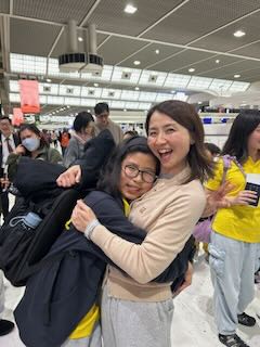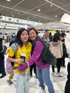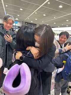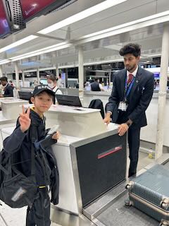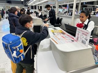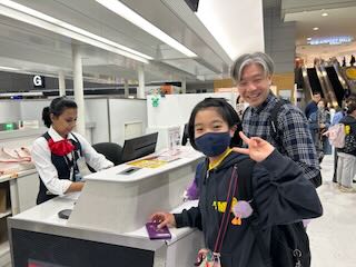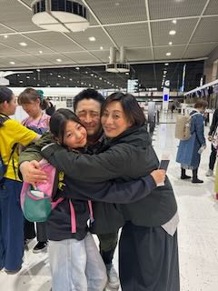 チェックインを済ませて、記念撮影。そして見送りに来てくださった家族との「行ってきますハグハグタイム」(^ ^)。がんばるのは子どもたちだけではありません。日本で待つ家族も不安と心配との戦いですね。見守る家族はたくさん応援のエネルギーを地球の裏側まで送ってくれるはずです。