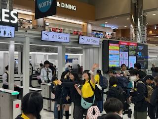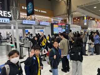 成田空港に全員元気に集合できました。インフルエンザなどが流行するこの季節はいつもヒヤヒヤしますが、全員が集合できて本当によかったです。