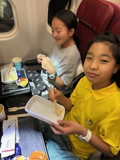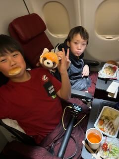 「機内食まだ〜?」「トイレどこ〜?」「トイレ流すのどうやるの〜?」「トイレ流れるの爆音で怖い〜!」「今なん時〜?」