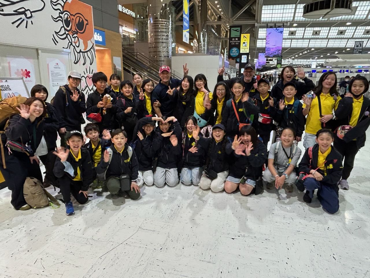 成田空港に全員元気に集合できました。インフルエンザなどが流行するこの季節はいつもヒヤヒヤしますが、全員が集合できて本当によかったです。