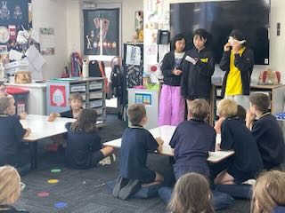 Woodend校では、明星の英語と同じように、週2回全学年で日本語の授業があります。その日本語の授業の時間を使わせていただき、明星の子どもたちが授業を行います。