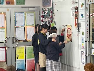 日本の学校でも30分以上の授業を任される経験は子どもたちにはあまりありません。それなのに、いきなりオーストラリアで、しかも英語でやるのですから、なかなか度胸がいりますね。明星の子どもたちはいつも緊張していても緊張しているように見えないから不思議です。