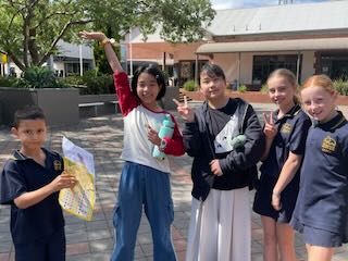 プレゼンテーション以外にも、クラスで授業を受けたり、体育の授業を広い芝生のグラウンドで受けたりなど、楽しいことばかりです。日本でいう「どーんじゃんけん」をやってくれたクラスもありました。確かにどーんじゃんけんは言葉も必要ないですし、最高に楽しめる遊びですね。Woodend校では「Lucky Run」と呼んでいるそうです。明星の男の子が大活躍!!クラスのヒーローになっていました(^ ^)!勝利した後に駆け寄ってくるクラスメイト。そしてハグやハイタッチをして喜びを分かち合う姿。それをお迎えにきたホストファーザーに報告をして、ホストファーザーもハイタッチで喜んでくれる姿は、もう「短期留学生」ではなく、Woodendの子そのものです。たった学校生活4日目で言葉が通じない国でここまで関係を構築できるのは、小学生ならではでもあるかもしれません。小さいうちに海を渡るメリットをこんな姿からも感じますね。