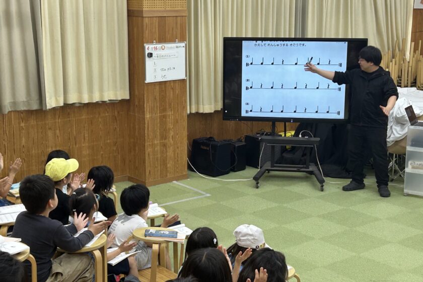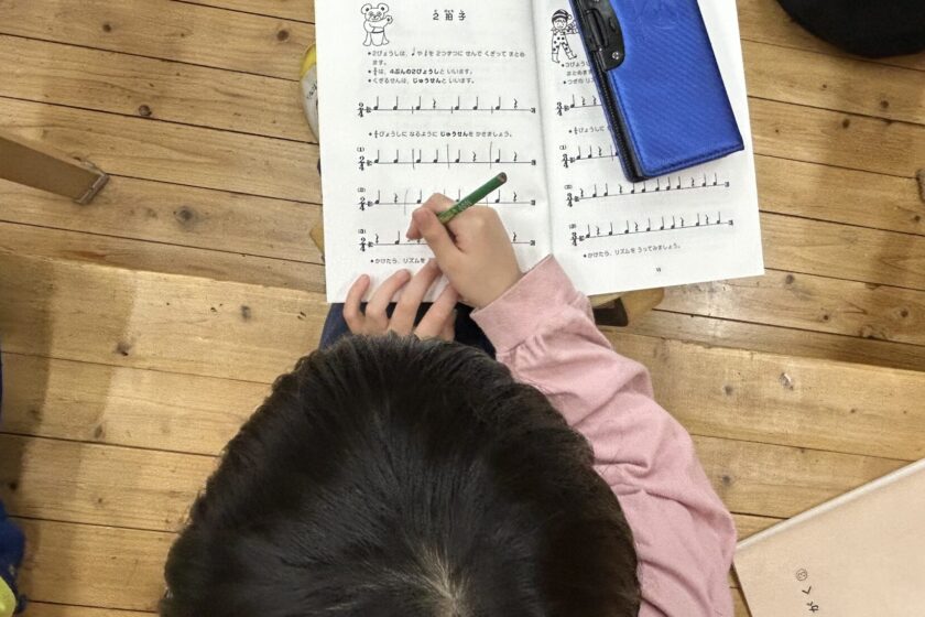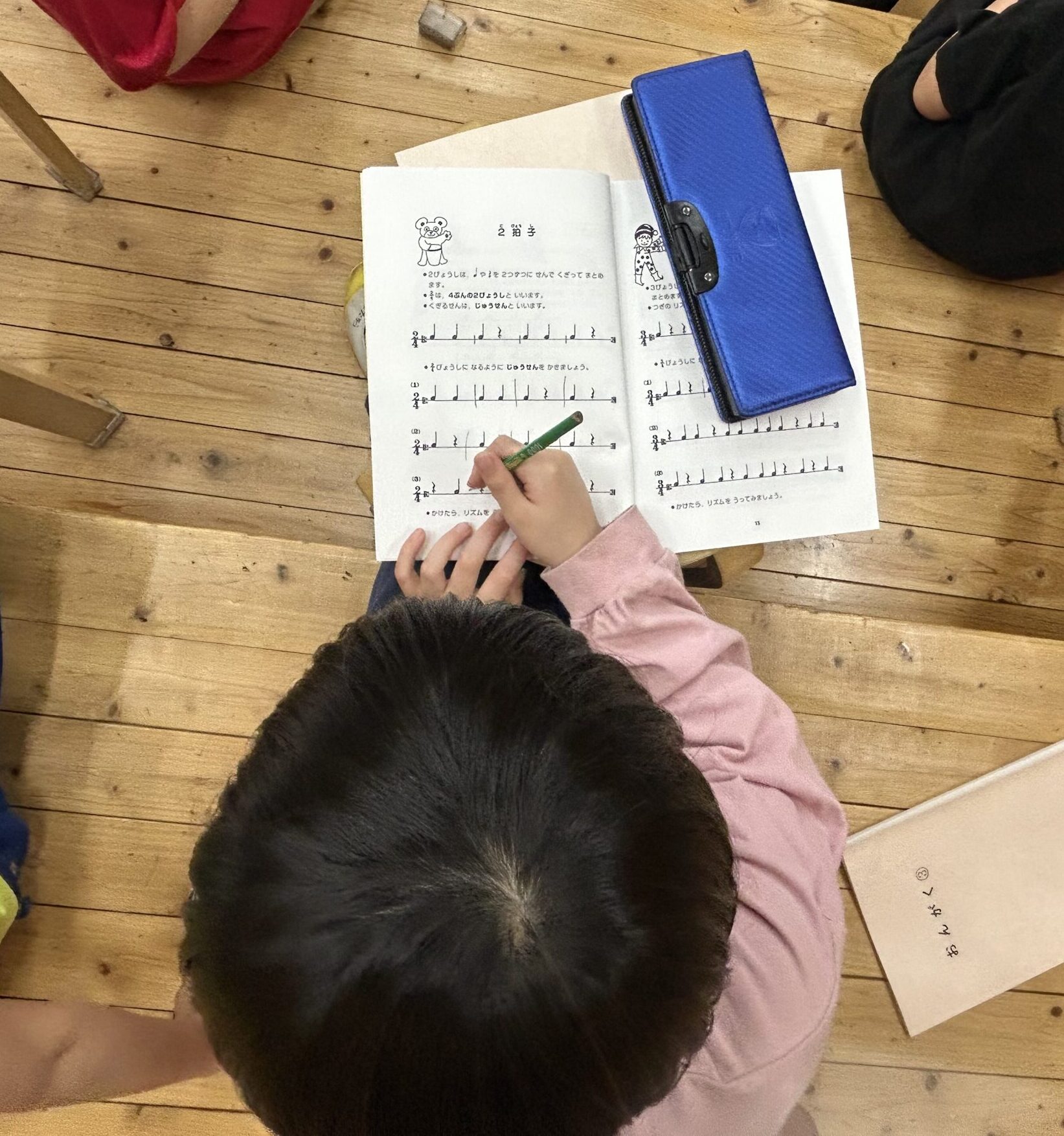 今日は「2拍子」という言葉を学び、リズム譜を区切っていきました。
