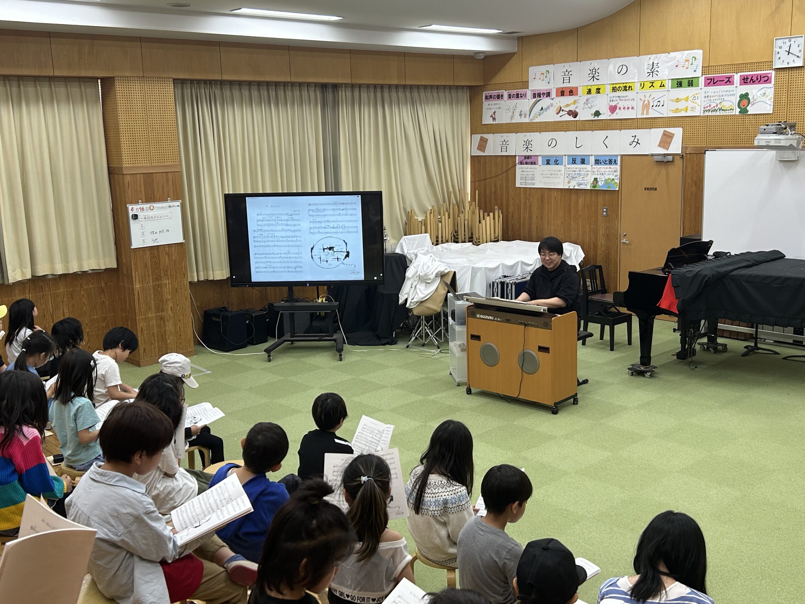 音楽室に集まって、「さあ、始めよう♪」と元気に歌い、気持ちを整えて授業がスタートします。