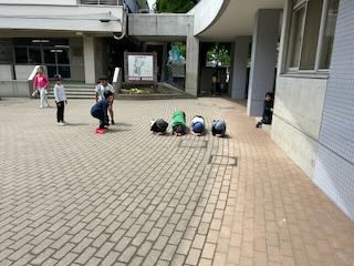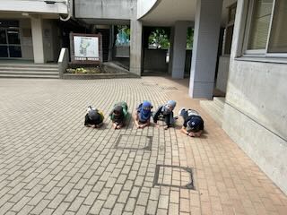 昼休みにイチョウ広場をあるいていると、数名の男の子たちが全員私の方にひれ伏している!?なんだろう。。。近づいていってみる。。。「ど、どうしたの?」「忍者の修行!!」ここでもただ「今」この瞬間の遊びを全力で楽しむ子どもたち。