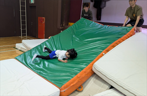 小学校展の翌日には、未就学児のお子様を対象とした体験ひろば「マットあそび」を開催しました。
