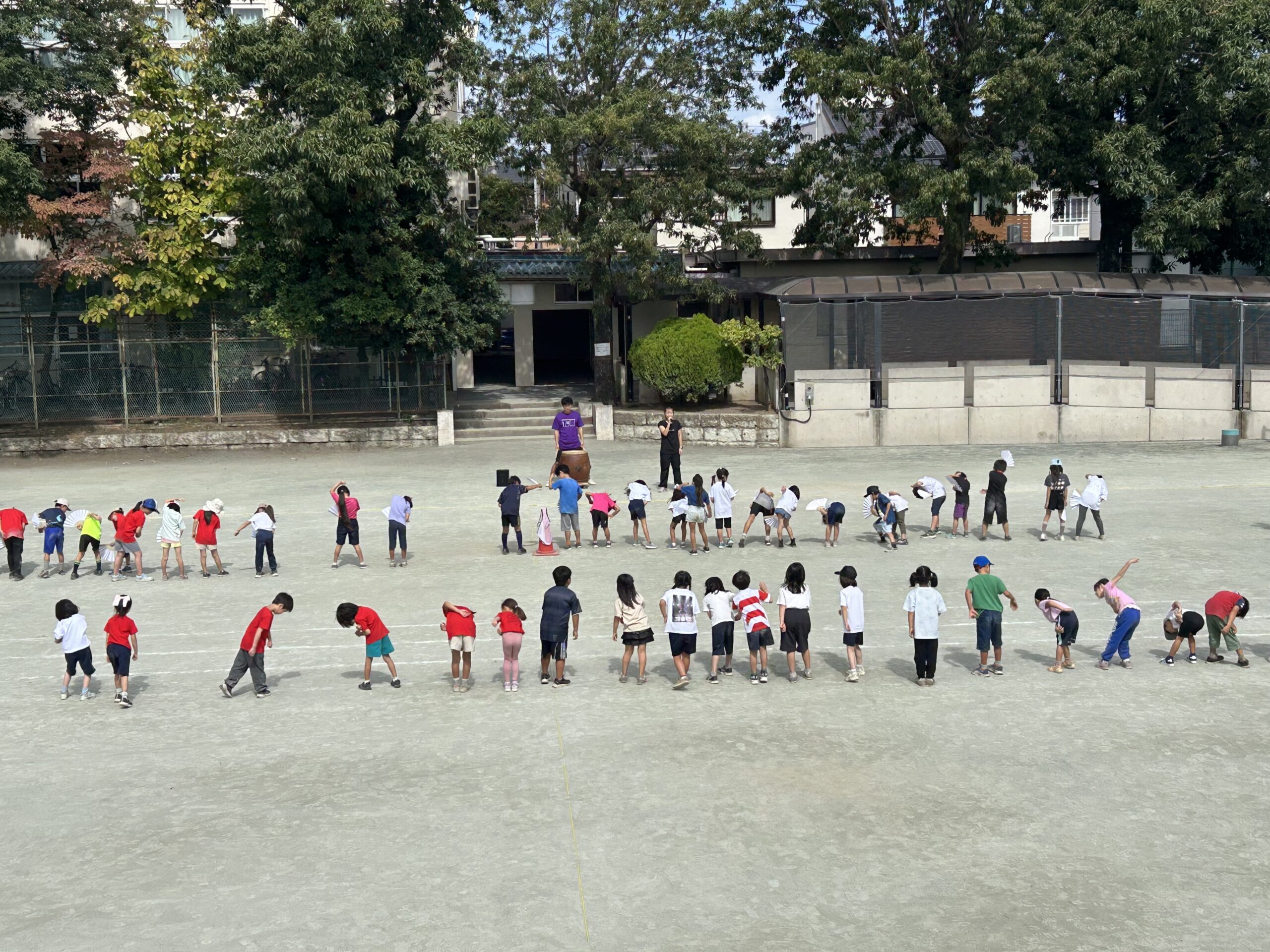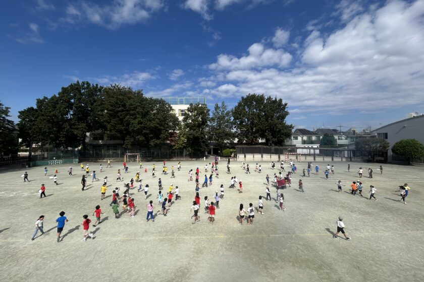 運動会の練習が始まり、子どもたちの元気な声がグラウンドに響いています。
