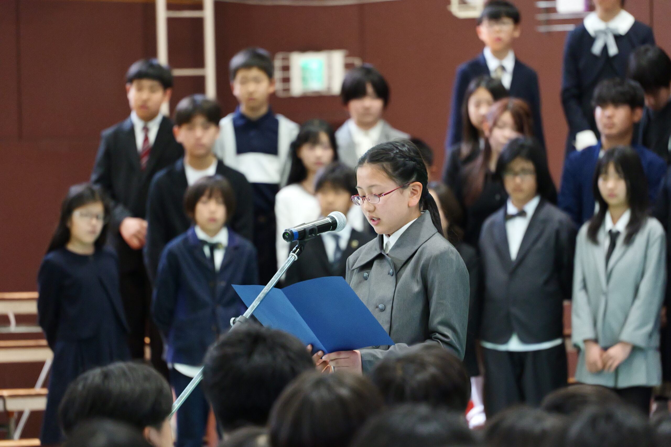 中学校は、2クラスから4クラスになり、友達とうまく関係を作っていけるかなと、不安なこともありますが、私は意見がぶつかるのを恐れず、自分の意見も相手の意見も大事にして友達とともに楽しい中学校生活を送っていきたいです。