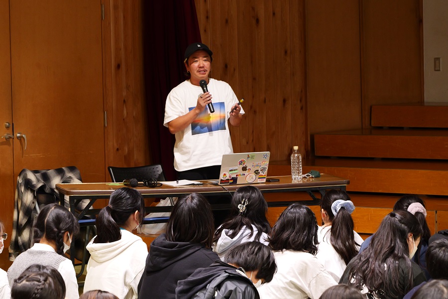 今年度7年生初めての「この人に会いたい」企画として、11月13日(木)、大嶋悠生さんをお招きしました。大嶋さんはなでしこリーグ女子サッカー選手として活躍し、引退後に治療を経て戸籍を男性に変更しています。30歳でオーストラリアに住み、DE&Iが日常に根付く社会に触れて人生観や価値観が大きく変わり、現在は企業・自治体・学校などで講演やワークショップを行っています。実は明星学園には今年の3月に教員向けの研修としてお話しにいらしていただいており、その時からぜひ生徒向けにもお話をしていただきたいと思っていたのでした。