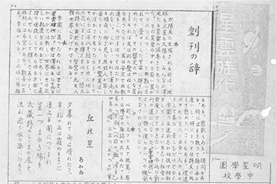 内野の指導の中で注目されるのが、『星雲時代』という新聞づくりです。生徒一人ひとりが自分の文字で書き、趣味のこと、研究したこと、見学に行ったことなど、思い思いに書き連ね、とても伸びやかな紙面になっています。創刊の辞は内野が書いています。